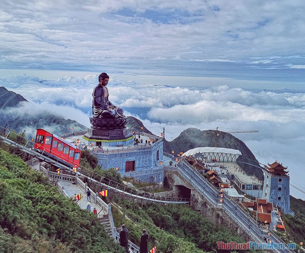 Chỉ trong vài phút, bạn sẽ băng qua thung lũng Mường Hoa, ngắm nhìn biển mây bồng bềnh và những dãy núi trùng điệp trước khi chinh phục đỉnh Fansipan 3.143m – Nóc nhà Đông Dương (chi phí tự túc). Khoảnh khắc đứng trên đỉnh cao, giữa trời mây lộng gió chắc chắn sẽ là kỷ niệm khó quên.