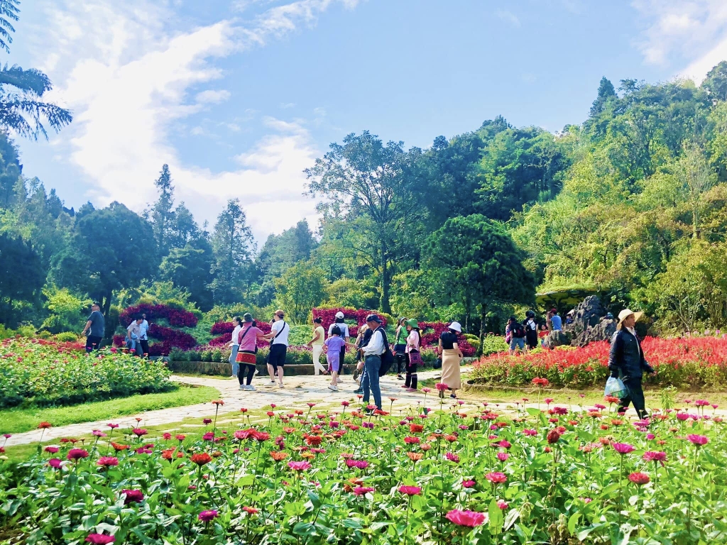 HDV sẽ đưa Quý khách tham quan ba khu vực nổi bật: Vườn hoa Hàm Rồng rực rỡ sắc màu, Vườn đá Thạch Lâm kỳ bí và Đỉnh Hàm Rồng – nơi ngắm toàn cảnh thị trấn Sapa ẩn hiện trong biển mây như chốn bồng lai.